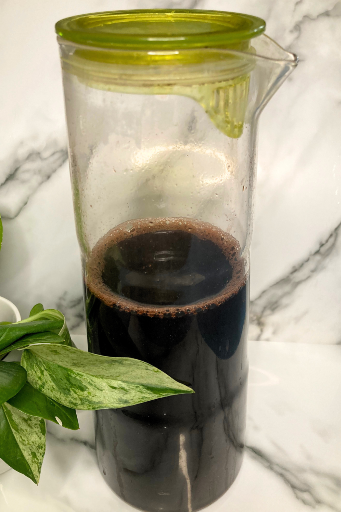 After 10 minutes stain the Qehwa (mixture) through a strainer. Throw away the ingredients and store the drink in a glass container.