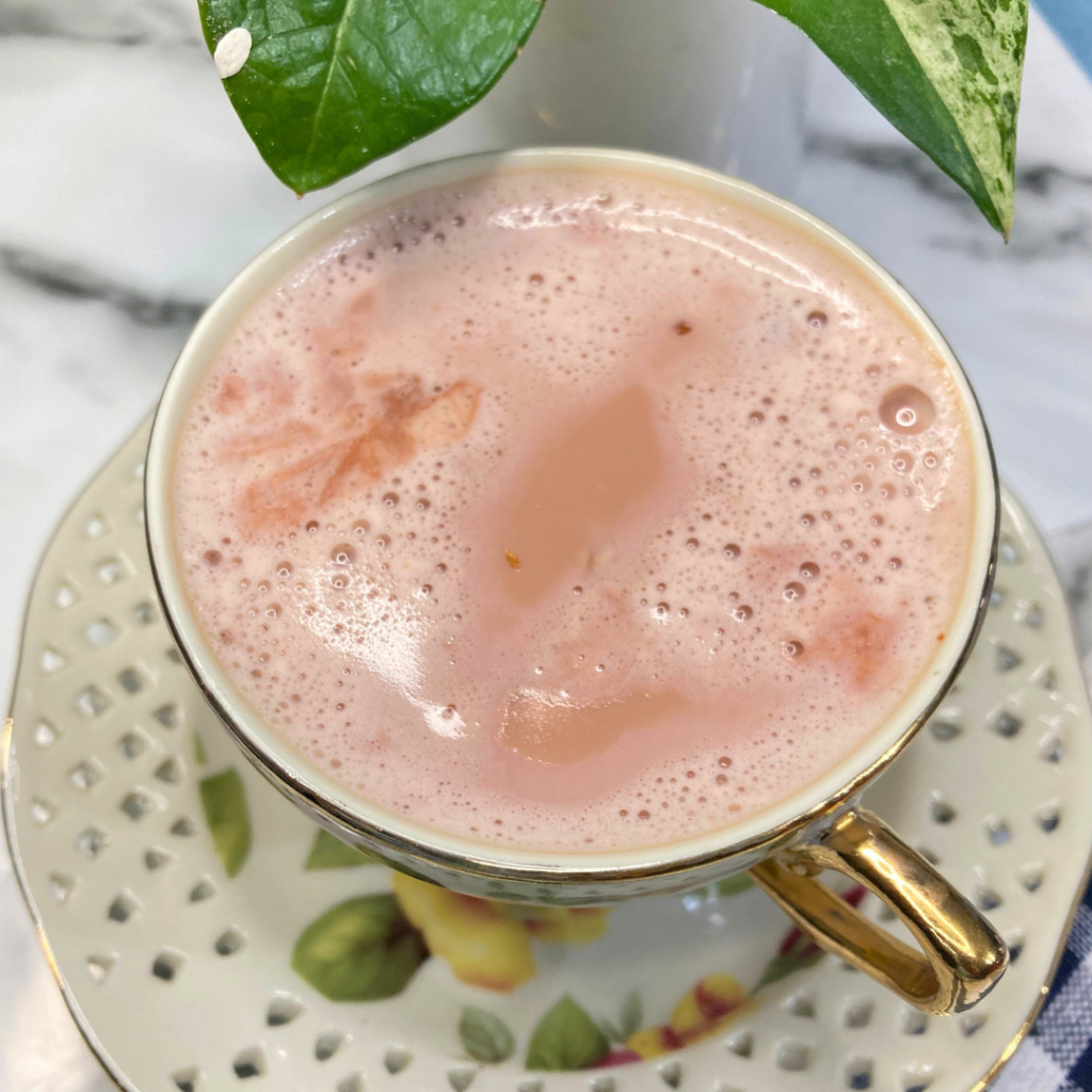 Pink tea is a traditional Kashmiri tea which is made by brewing tea leaves and baking soda together. It is then mixed with milk and it turns pink in colour. Is has a lot of names including Pink tea , Gulabi Chai , Pink chai or also known as Kashmiri Chai.