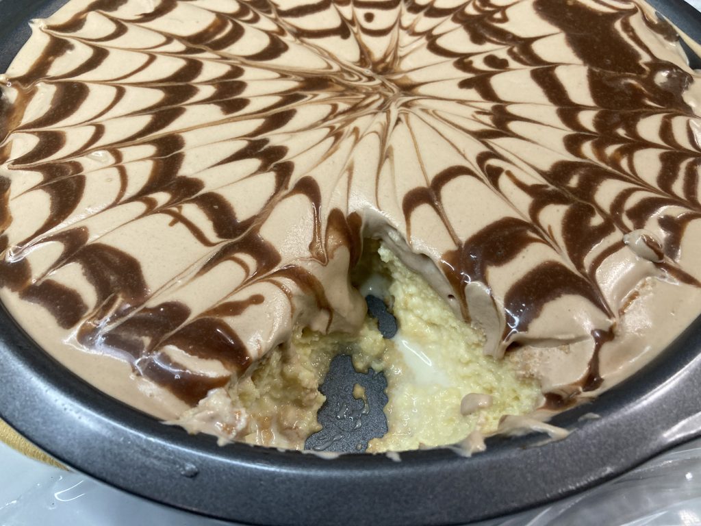 After 4-5 hours or if you have kept overnight you will see that the liquid is all soaked in the cake.
